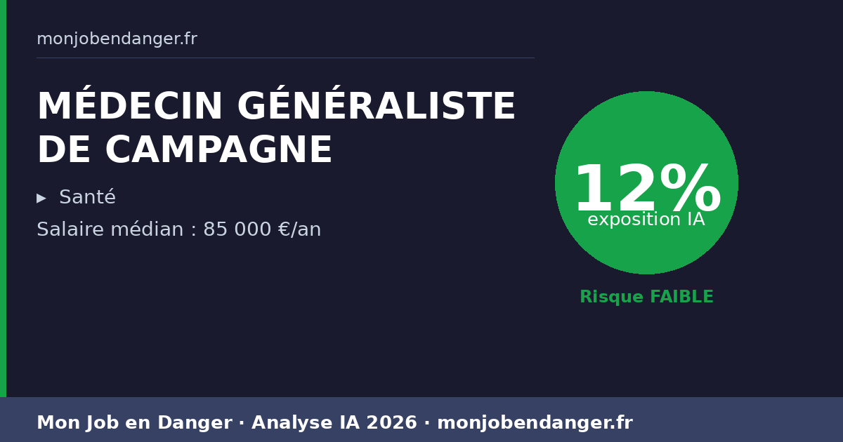 MÉDECIN GÉNÉRALISTE DE CAMPAGNE et IA en 2026 : 12% d’exposition — ce que ça change pour vous