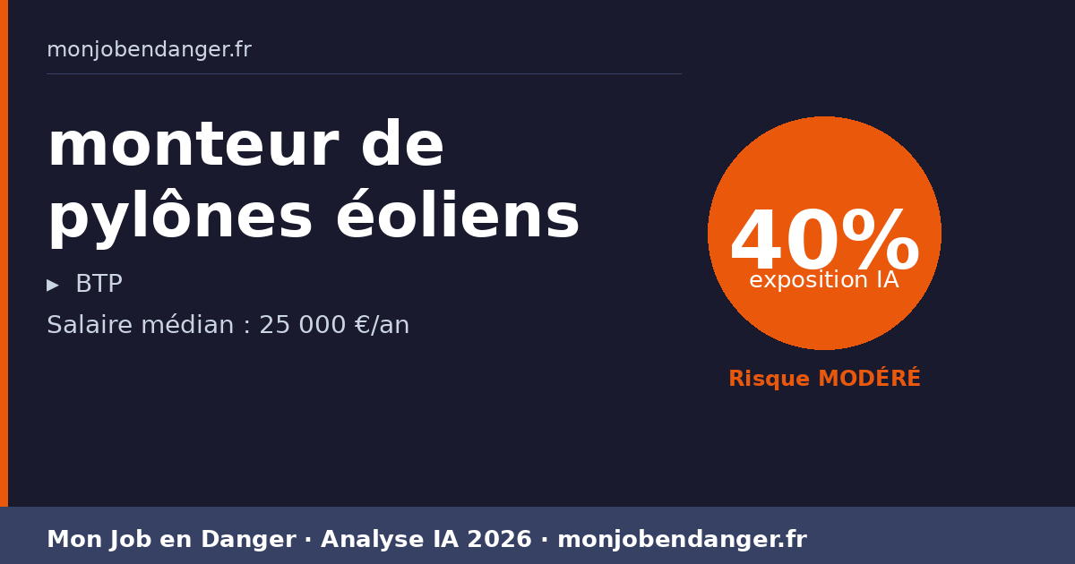 monteur de pylônes éoliens et IA en 2026 : 40% d’exposition — ce que ça change pour vous