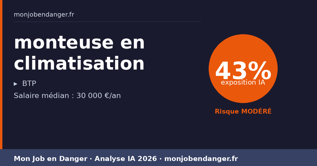En résumé : monteuse en climatisation : 43% exposition IA. Salaire 30 000 €.