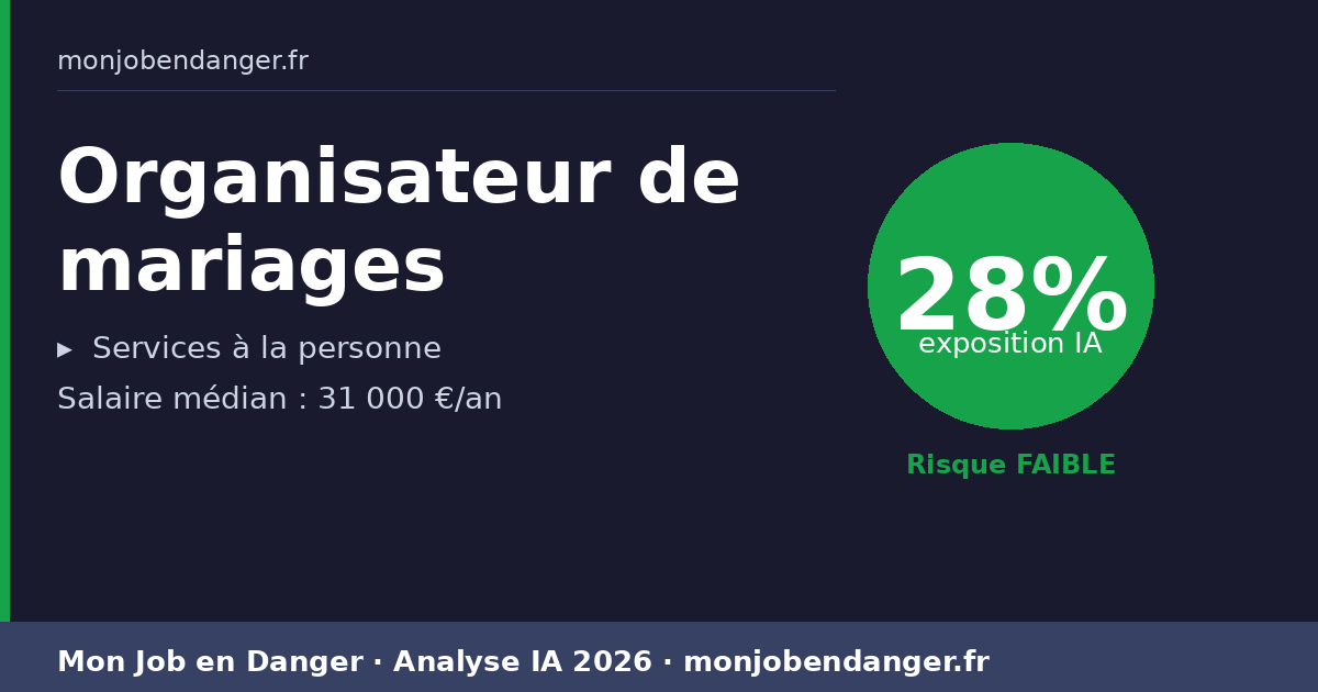 Organisateur de mariages et IA en 2026 : 28% d’exposition — ce que ça change pour vous