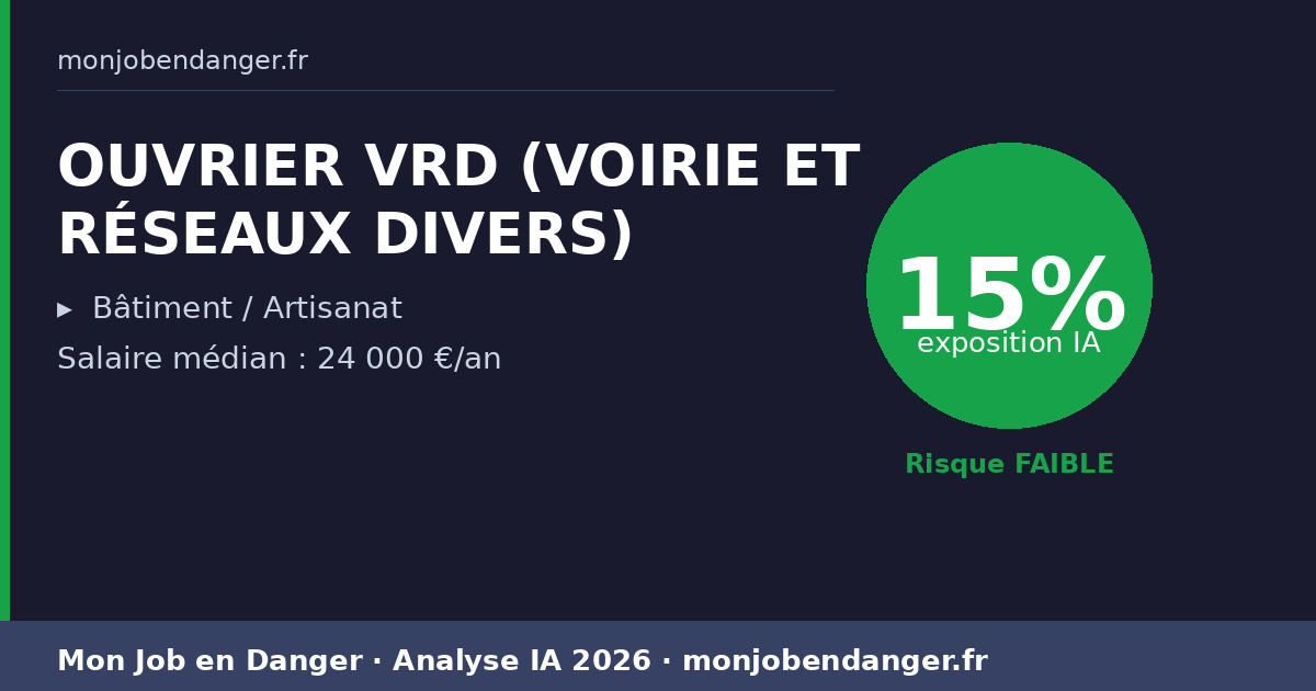 OUVRIER VRD (VOIRIE ET RÉSEAUX DIVERS) et IA en 2026 : 15% d’exposition — ce que ça change pour vous