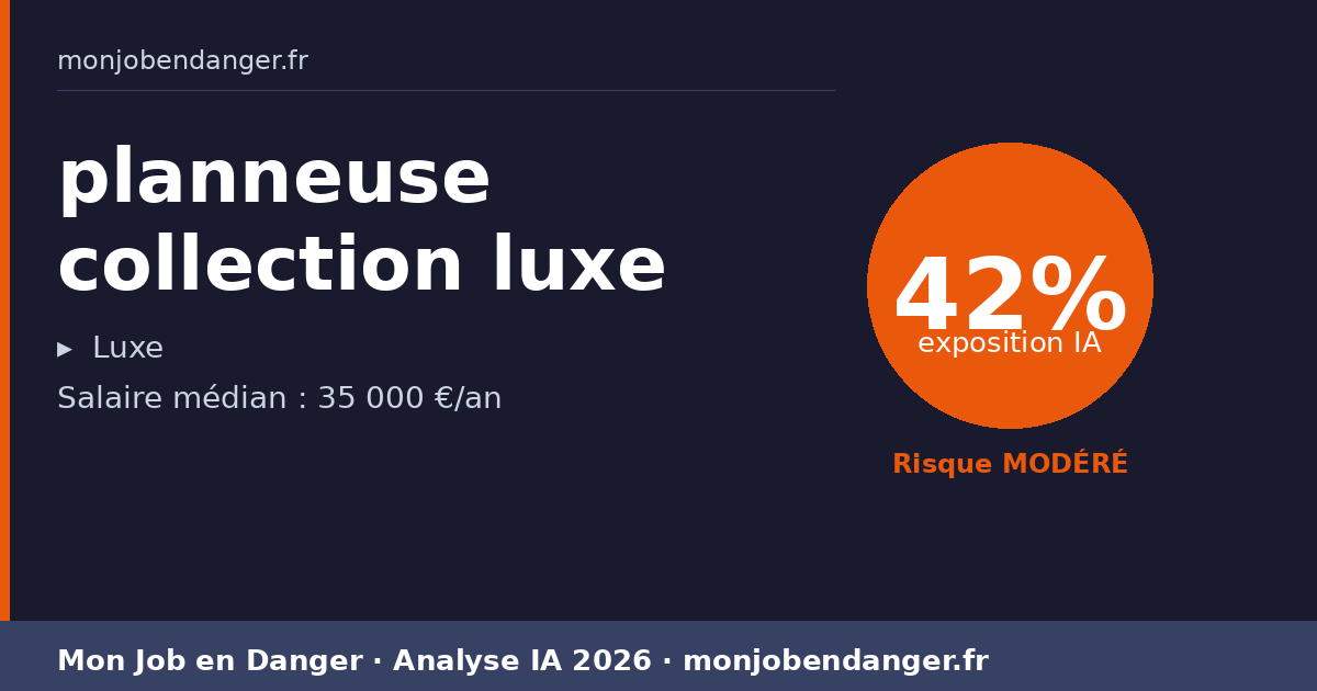 À 42% d’exposition, les planneuses collection luxe vivent une mutation progressive. Certaines tâches seront assistées par l’IA, d’autres resteront pleinement humaines. Votre meilleure stratégie : adopter les outils IA pour amplifier votre productivité.