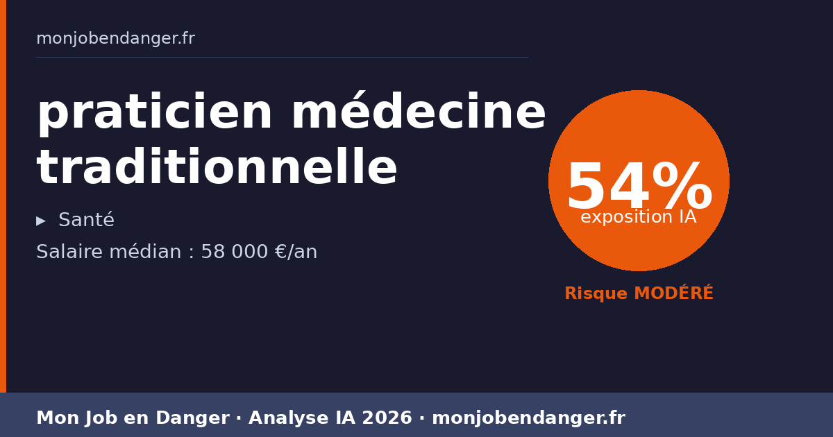 praticien médecine traditionnelle et IA en 2026 : 54% d’exposition — ce que ça change pour vous