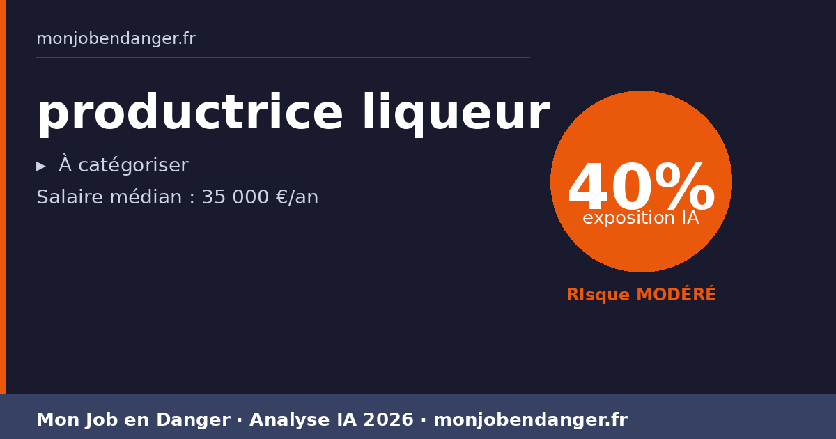 À 40% d’exposition, les productrices liqueur vivent une mutation progressive. Certaines tâches seront assistées par l’IA, d’autres resteront pleinement humaines. Votre meilleure stratégie : adopter les outils IA pour amplifier votre productivité.