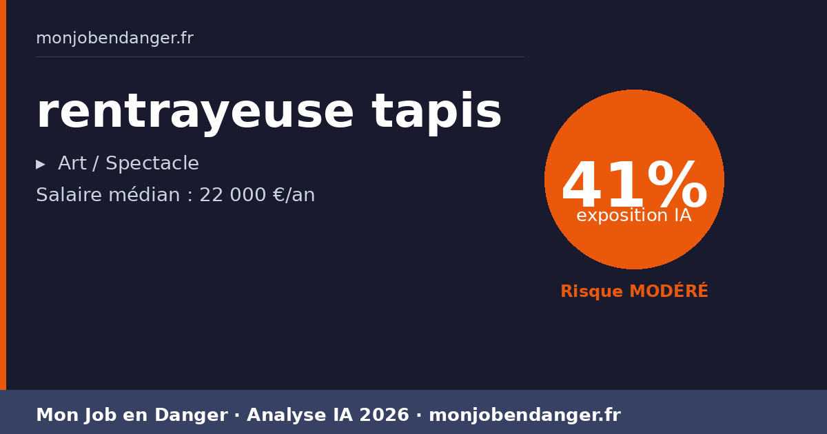 À 41% d’exposition, les rentrayeuse tapis vivent une mutation progressive. Certaines tâches seront assistées par l’IA, d’autres resteront pleinement humaines. Votre meilleure stratégie : adopter les outils IA pour amplifier votre productivité.