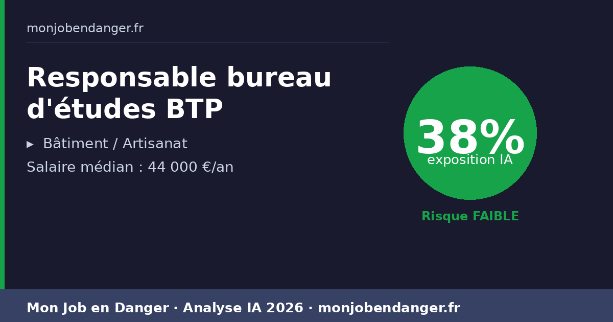 Responsable bureau d'études BTP et IA en 2026 : 38% d’exposition — ce que ça change pour vous