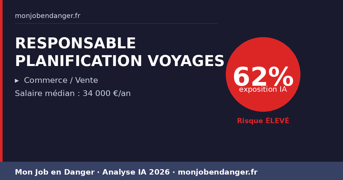 RESPONSABLE PLANIFICATION VOYAGES et IA en 2026 : 62% d’exposition — ce que ça change pour vous