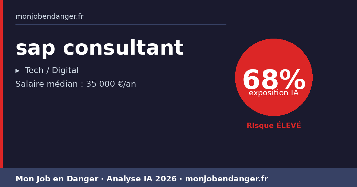 Salaire médian actuel : 35 000 €. Réaliste. Les sap consultant qui adoptent les outils IA en premier gagnent en productivité et peuvent négocier en position de force.