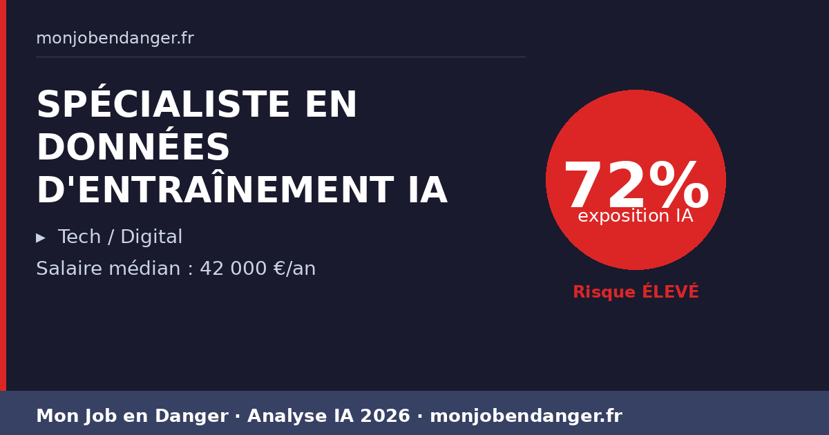 SPÉCIALISTE EN DONNÉES D'ENTRAÎNEMENT IA et IA en 2026 : 72% d’exposition — ce que ça change pour vous
