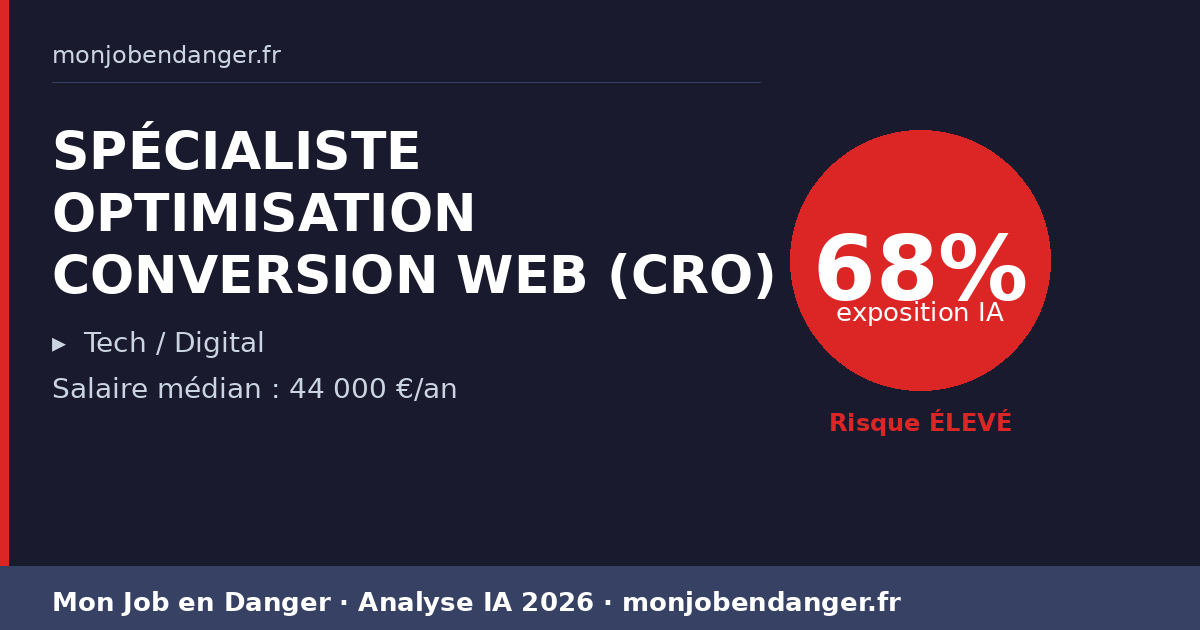 SPÉCIALISTE OPTIMISATION CONVERSION WEB (CRO) et IA en 2026 : 68% d’exposition — ce que ça change pour vous