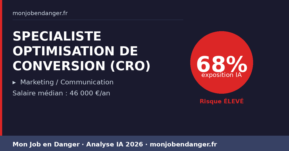 SPECIALISTE OPTIMISATION DE CONVERSION (CRO) et IA en 2026 : 68% d’exposition — ce que ça change pour vous