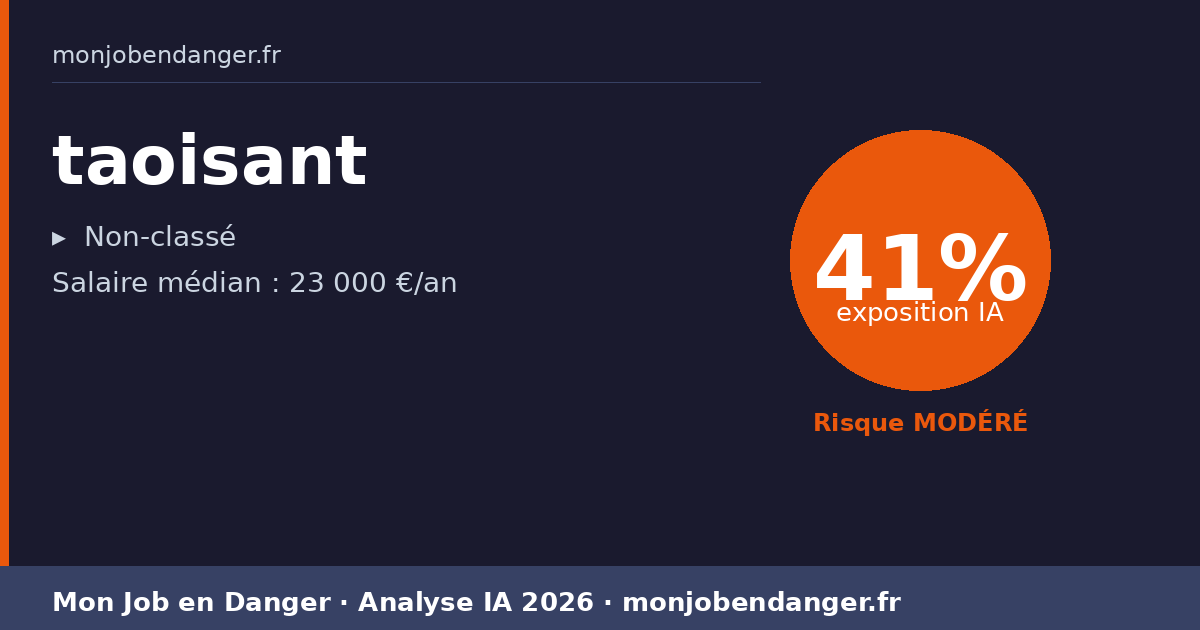 À 41% d’exposition, les taoisants vivent une mutation progressive. Certaines tâches seront assistées par l’IA, d’autres resteront pleinement humaines. Votre meilleure stratégie : adopter les outils IA pour amplifier votre productivité.