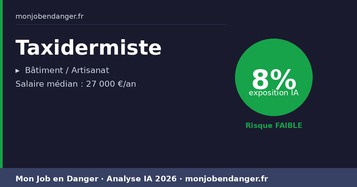 Taxidermiste et IA en 2026 : 8% d’exposition — ce que ça change pour vous