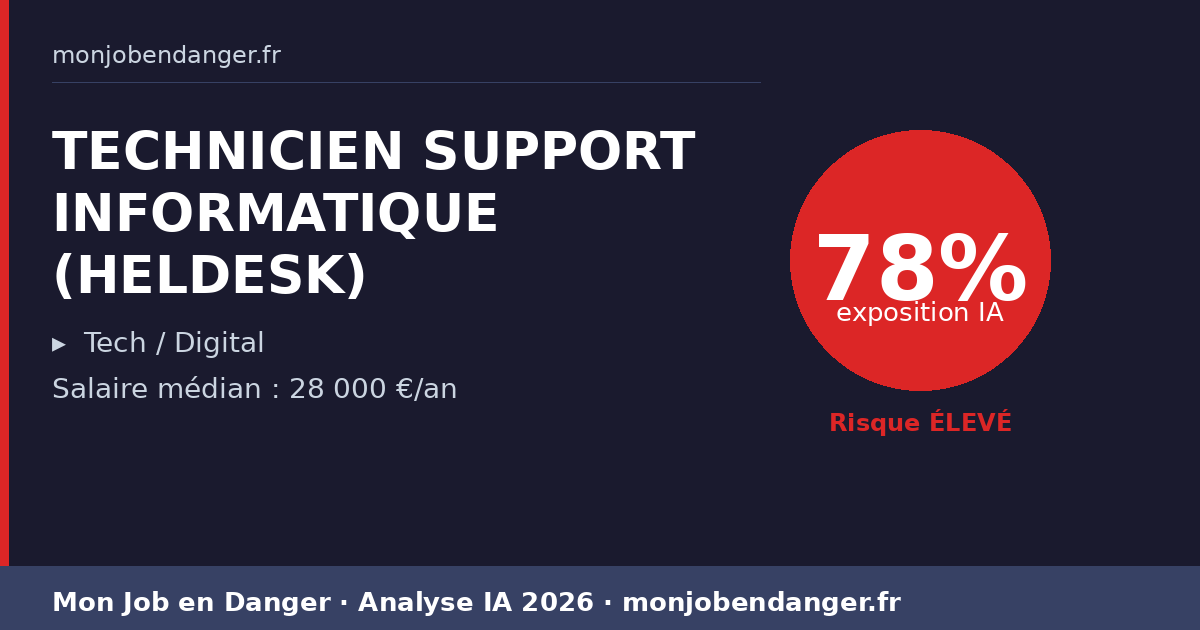 TECHNICIEN SUPPORT INFORMATIQUE (HELDESK) et IA en 2026 : 78% d’exposition — ce que ça change pour vous
