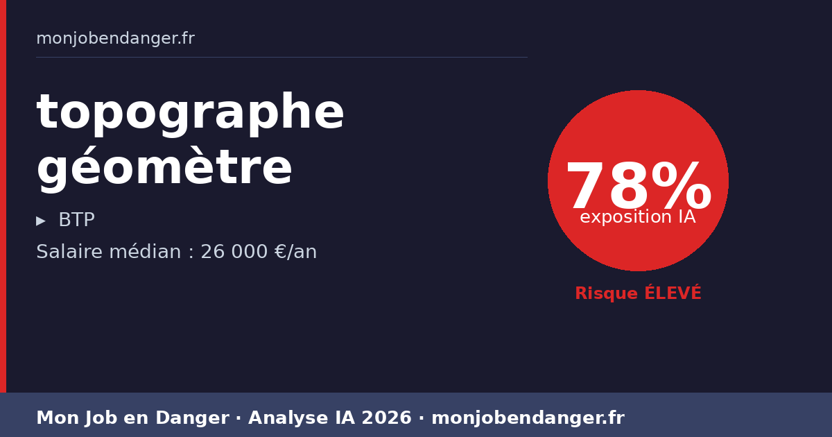 topographe géomètre et IA en 2026 : 78% d’exposition — ce que ça change pour vous