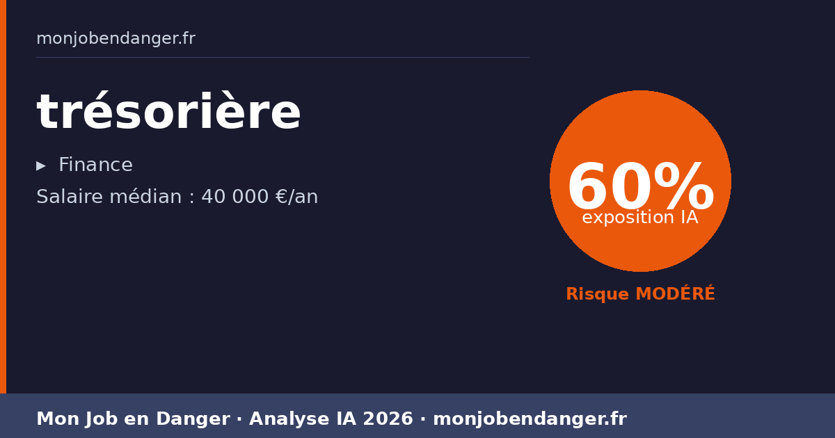 Salaire médian actuel : 40 000 €. Réaliste. Les trésorière qui adoptent les outils IA en premier gagnent en productivité et peuvent négocier en position de force.